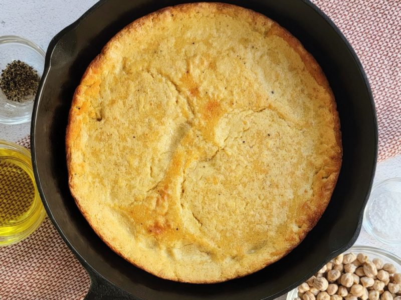 - Use a metal spatula to separate the fainá from the base of the skillet; then leave it in the skillet to cool for about 10 minutes.